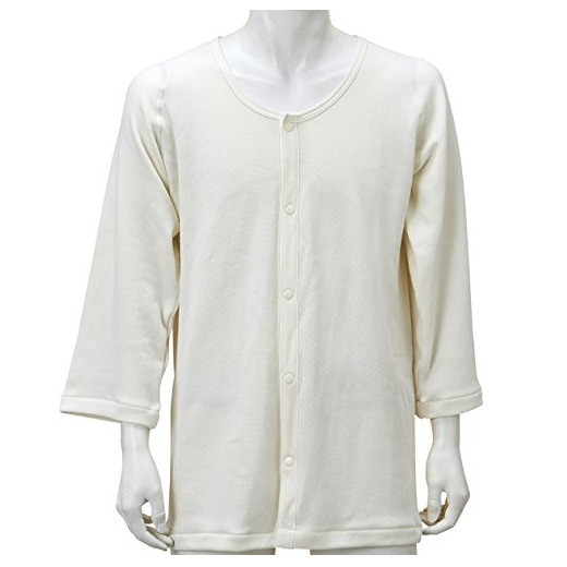 厚手 紳士 のびのびワンタッチ肌着7分袖 ホック付 BM5F オフホワイト M-L 秋冬用 神戸生絲