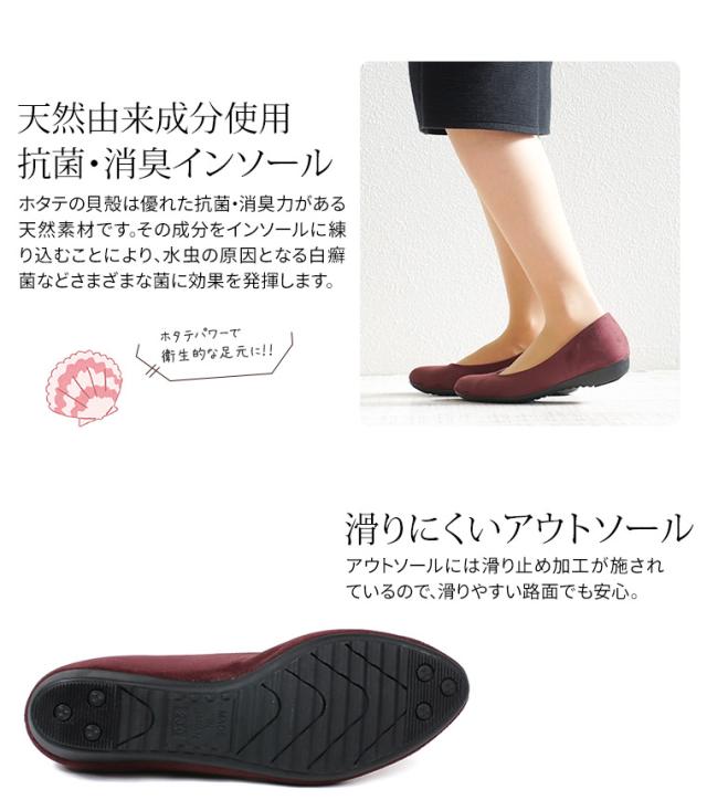 パンプス 痛くない 抗菌 消臭 日本製 ウェッジソール FIRST CONTACT ファーストコンタクト バレエシューズ フラットシューズ 靴 レディース 歩きやすい 黒 ローヒール コンフォートシューズ 小さいサイズ 大きいサイズ ヒール 3cm 39292