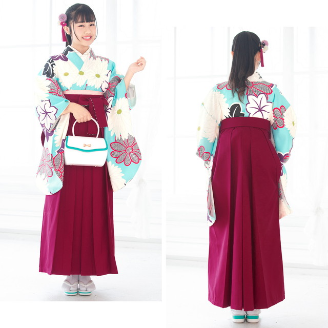 卒業式 袴セット 購入 小学生卒業式袴セット 女の子 小学生 袴 ジュニア ボヌールセゾン 水色 ブルー 赤紫系 菊 紅葉 十三参り 十三詣り 13歳 小振袖 着物セット 送料無料