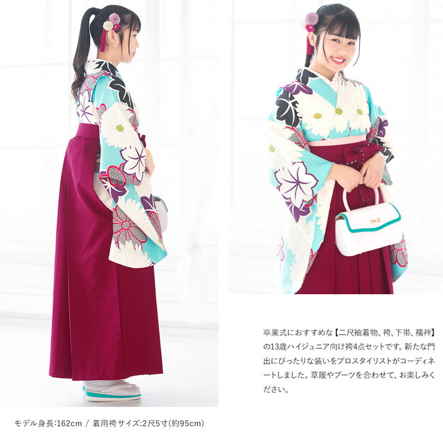 ブランド『bonheur saisons(ボヌールセゾン)』の13歳二尺袖着物をコーディネートした袴セットです。