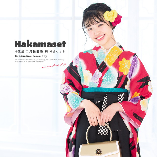 『bonheur saisons』の13歳二尺袖着物をコーディネートした袴セットです。