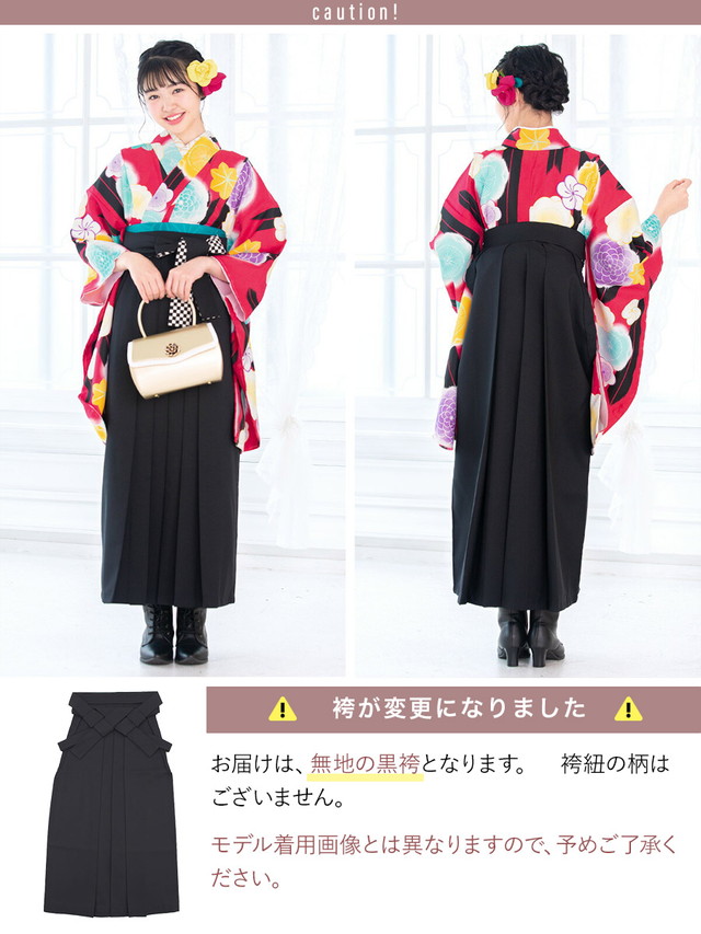 袴は、シンプルな無地袴です。中仕切りがない行灯袴です。