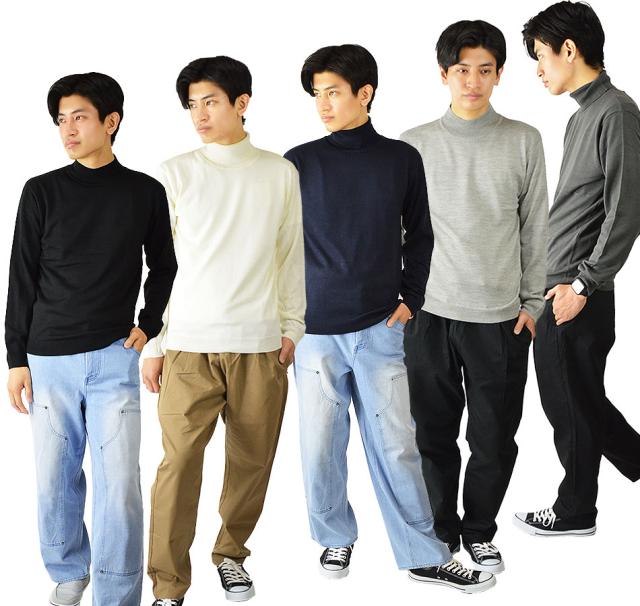 タートルネック ニット メンズ セーター タートルネックニット ハイネック ハイゲージ タートルネックセーター ハイネックセーター 薄手 無地 メール便送料無料 冬新作