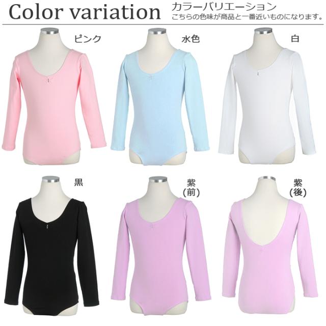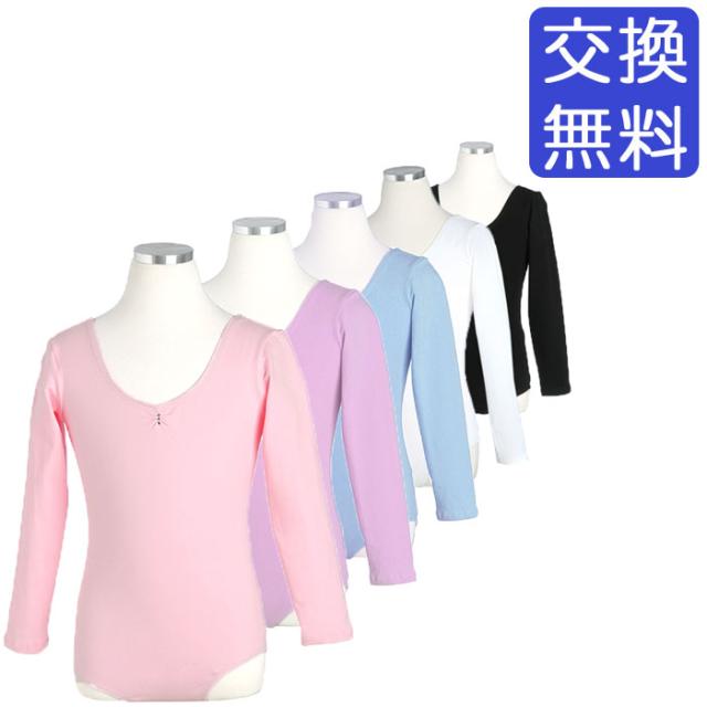 バレエ レオタード 子供用 ジュニア スカートなし NEWシンプル (長袖) キッズ レッスン着 新体操にも 安いバレエ用品 白/黒/紫/ピンク/水色 100/120/130/140/150