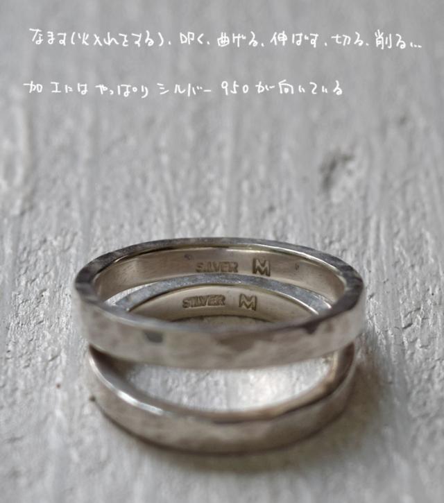 ツチめのペアリング 細 リング 2本セット メンズ レディース ハンドメイド オーダー シルバー 槌目 シンプル 上品 おしゃれ 指輪 Silver 950 マモる 手作り 手づくり ダイヤモンド tkr001pair