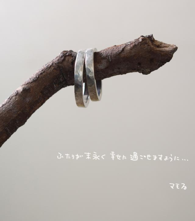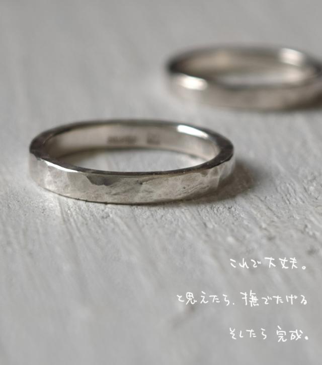ツチめのペアリング(細) メンズ レディース ハンドメイド オーダー シルバー 槌目 シンプル 上品 おしゃれ 指輪 Silver 950 マモる 手作り 手づくり ダイヤモンド(tkr001pair)