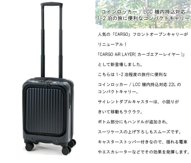 【LCC機内持込 コインロッカー対応】 TRIO キャリーケース CARGO AiR LAYER CAT-235LY 22L カーゴ エアーレイヤー フロントオープンキャリー ストッパー付き サイレント双輪キャスター ボトムハンドル スーツケース