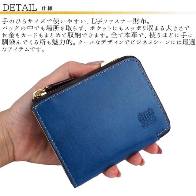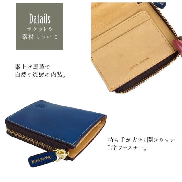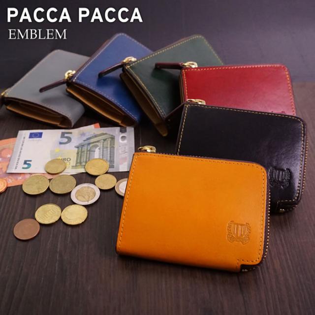 財布 メンズ 小さい財布 コンパクト財布 本革 紳士 小銭あり 極小財布 L字ファスナー 牛革 馬革 素上げ カード入れ ビジネス シック エンブレム pacca pacca サイフ