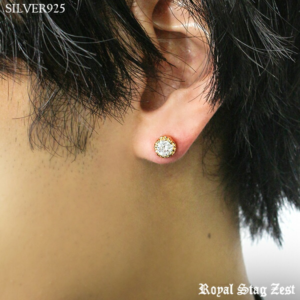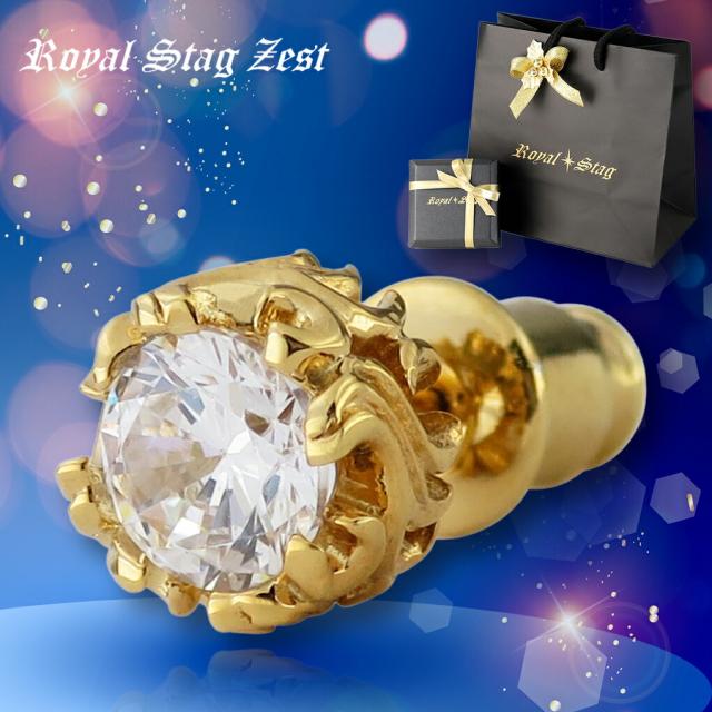 【Royal Stag ZEST】 ゴールドカラー 一粒 ジルコニア シルバーピアス (1P/片耳用)