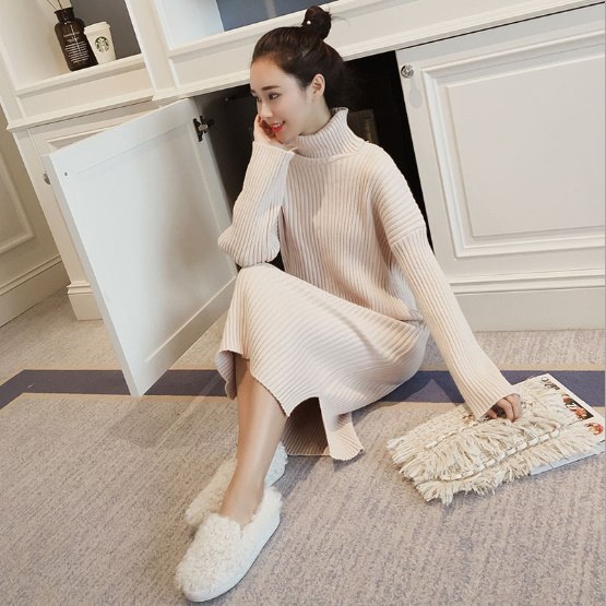 ニットワンピース 4色 ロング 秋 冬 タートルニット タイト スリム タートルネック サイドスリット ドロップショルダー ゆったり フェミニン トレンド カジュアル 普段着 デイリー お出かけ おしゃれ レディース