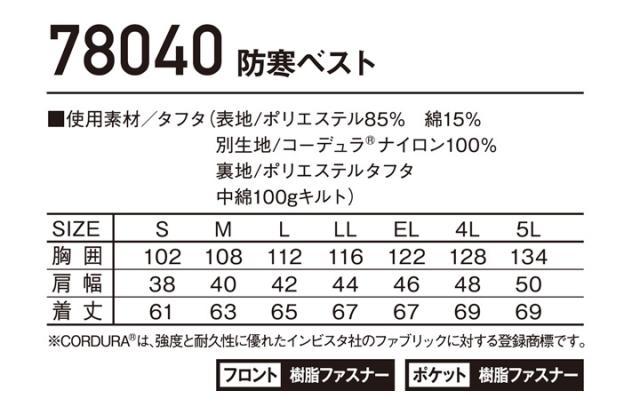 防寒ベスト 防寒着 フルハーネス対応 Z-DRAGON 78040 高強度【秋冬】防寒服 作業服 作業着 ユニフォーム 自重堂