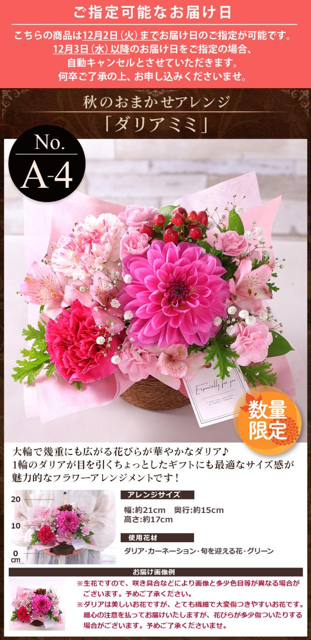 - 娘の誕生日のお祝いに送りました。秋らしい温かみのある色味のお花で、イメージ通りでとても素敵でした。こちらのお店は何回か利用していますが、いつも素敵なお花を贈ってくれて満足しています。