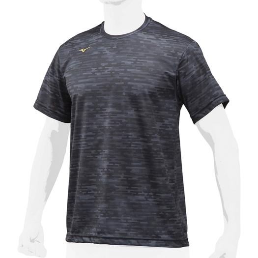 カスミ柄を全面にあしらったミズノプロベースボールTシャツ。夏練習の相棒に。