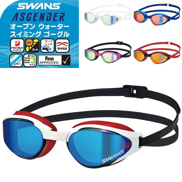 あす着(パケット便200円可能)SWANS(スワンズ) ミラー オープン ウォーター スイミングゴーグル トライアスロン/曇り止め/紫外線カット/FINA承認 ASCENDER SR-81MPAF