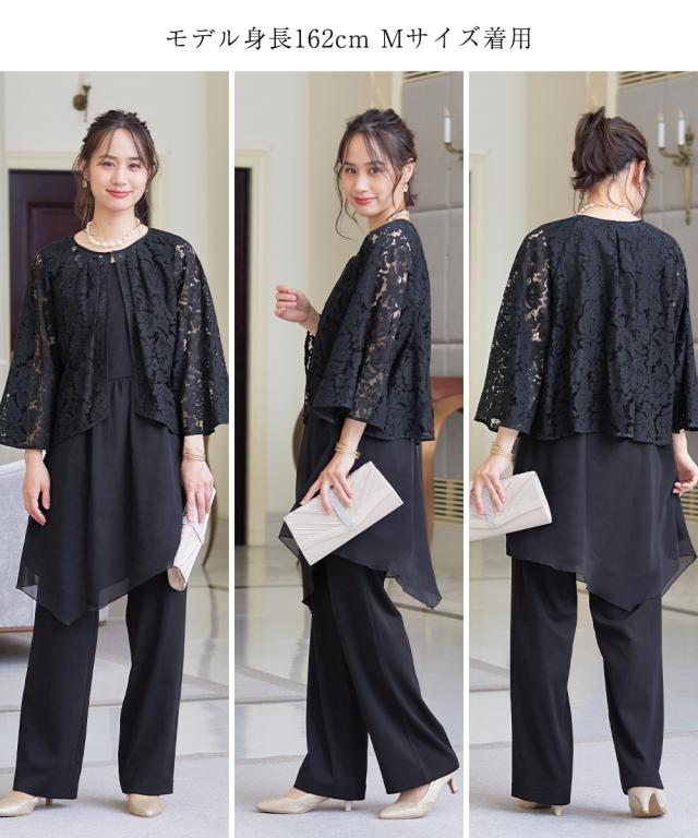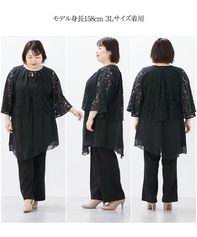 ドレス パーティー 大きいサイズ レディース レース 使い3点セット パンツ フォーマル 黒 4L/5L/6L 結婚式 フォーマル 二次会 披露宴 謝恩会 同窓会 卒業式 パーティドレス 可愛い 大人 20代 30代 40代 体形カバー ニッセン nissen