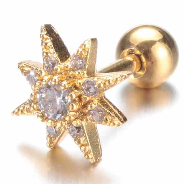 [16G ヘリックス ボディピアス] シャイニングスター ストレートバーベル ボディーピアス 16ゲージ 金色 軟骨 耳 トラガス アンテナヘリックス メンズ レディース ステンレス 彼氏 彼女 男の人 女の人 人気 おしゃれ プレゼント クリスマス ジルコニア 星 太陽 クリスタル