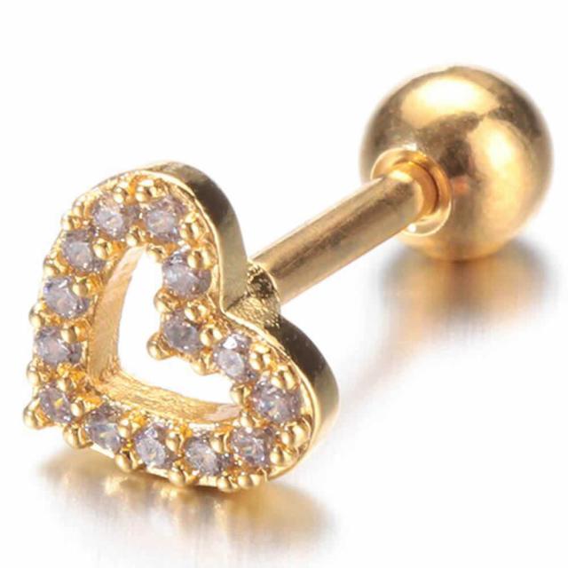 [16G ヘリックス ボディピアス] オープンハートクリスタル ストレートバーベル ボディーピアス 16ゲージ 金色 軟骨 耳 トラガス アンテナヘリックス メンズ レディース ステンレス 彼氏 彼女 男の人 女の人 人気 おしゃれ プレゼント クリスマス ジルコニア パベ パヴェ