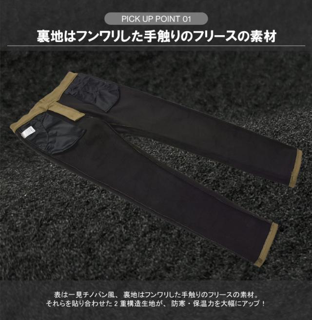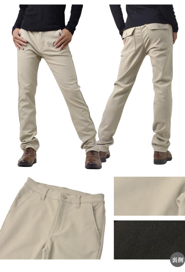ボトムス メンズ チノパンツ パンツ 暖かいパンツ ウォームパンツ 厚手 防寒パンツ 裏フリース起毛 保温2層生地 ストレッチ スリム ゆったり【A9L】【パケ1】【A】