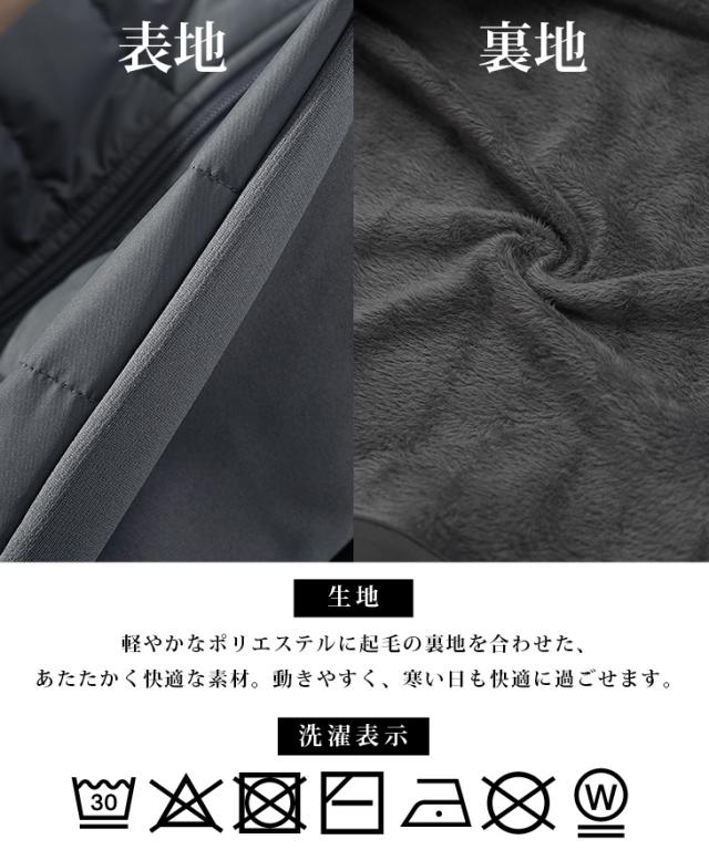 ポリエステル100%を使用し、裏地にはフリースを採用。