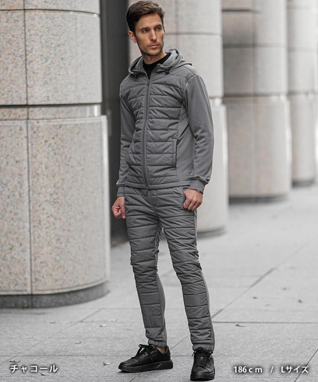 【送料無料】セットアップ メンズ 冬 中綿ジャケット 裏フリース 防寒 上下セット メンズ 新作 ジップパーカー ジョガーパンツ 裏起毛 上下 2点セット メンズファッション ウエストゴム ストレッチ オラオラ系 ちょいワル ジョーカー JOKER サムディフ