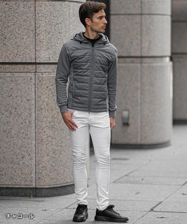 ライトアウター メンズ パーカー 中綿 裏フリース 防寒 ジップパーカー メンズ 新作 スリム 裏起毛 ストレッチ ダブルジップ 中綿ジャケット 細身 メンズファッション ちょいワル オラオラ系 ジョーカー JOKER サムディフ