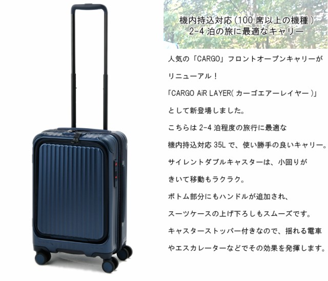 機内持ち込み可 カーゴ スーツケース エアレイヤー CAT-532LY 35L フロントオープン 2〜4泊 TSA ダイヤルロック ストッパー付 サイレント双輪 キャリーケース TRIO CARGO AiR LAYER
