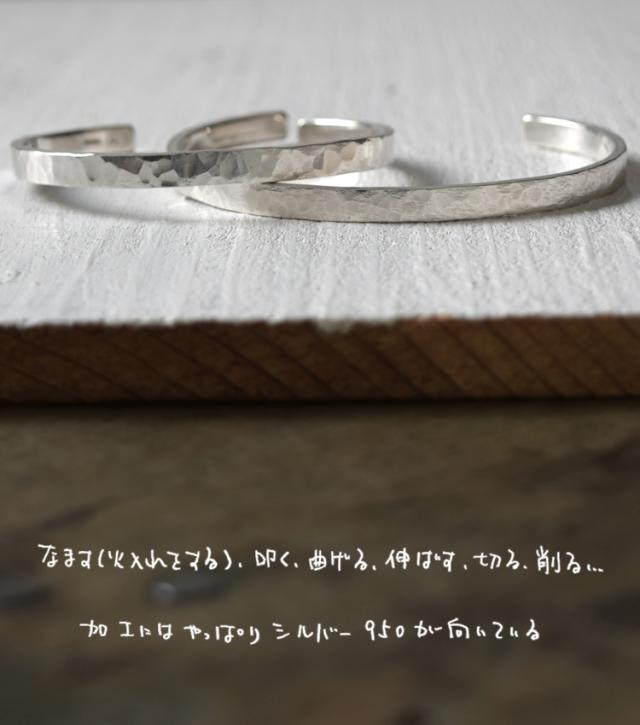 ツチめのペアバングル(中) 2本セット メンズ レディース ハンドメイド オーダー シルバー 槌目 シンプル 上品 おしゃれ 腕輪 Silver 950 ごつめ ゴツめ マモる 手作り 手づくり(tkb001pair)