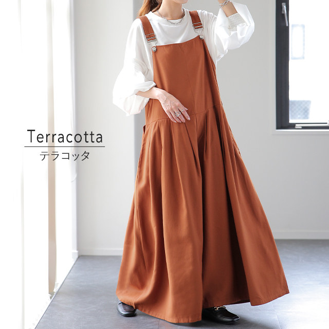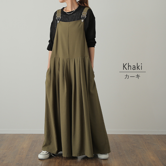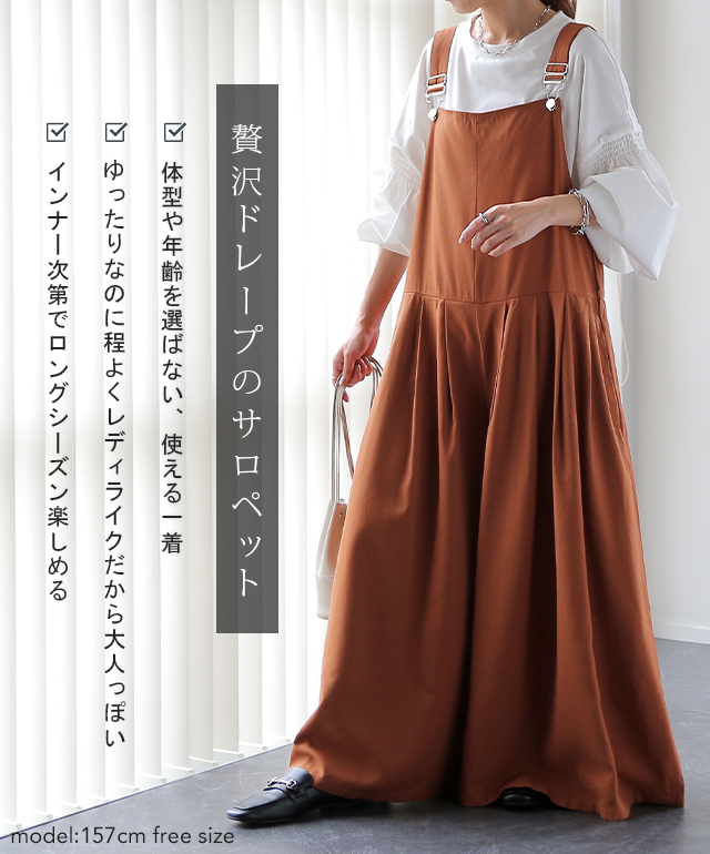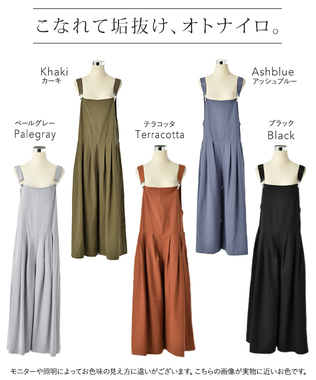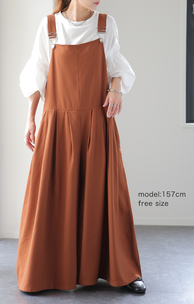 オールインワン レディース サロペット 体型カバー シンプル 無地 ナチュラルカラー 大きいサイズ フリーサイズ サロペ コンビネゾン つなぎ ワイドパンツ ワイド セレカジ パンツ きれいめ 冬 秋 秋新作