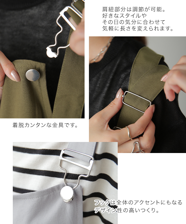 肩ひもは長さが調整できるので幅広い身長の方に着ていただけます。