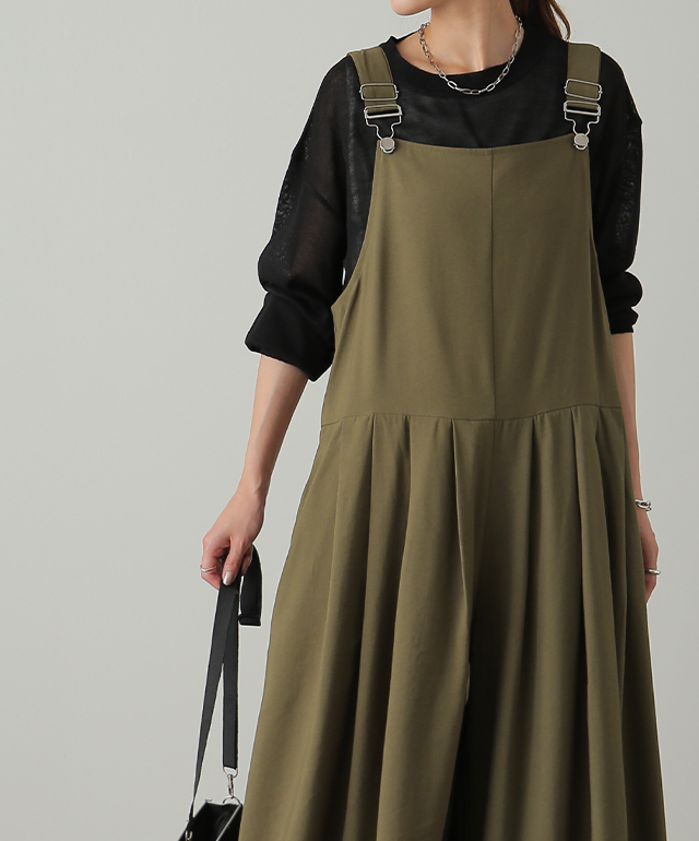 程よい厚みのある素材で、オールシーズン着ていただけるオールインワンが誕生しました。