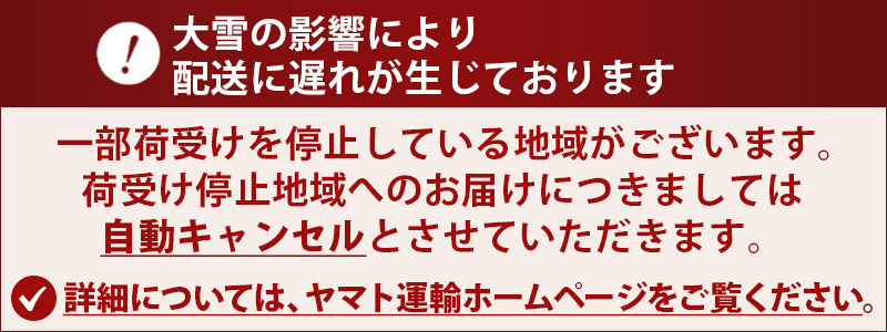 交通障害や規制の影響により、一部地域でお荷物のお届けに遅れが生じる場合があります。