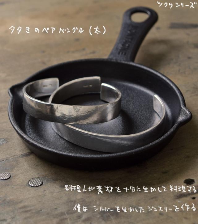 タタきのペアバングル(太) 2本セット メンズ レディース ハンドメイド オーダー シルバー 槌目 シンプル 上品 おしゃれ 腕輪 Silver 950 ごつめ ゴツめ マモる 手作り 手づくり(tkb005pair)