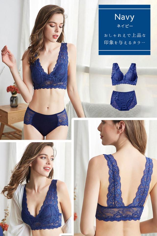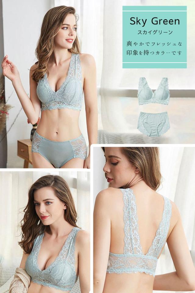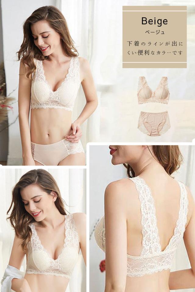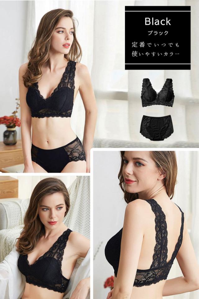 【セット】ブラジャー ショーツ パンツ レース ストレッチ ノンワイヤー 可愛い 垂れ パッド 下着 おしゃれ 育乳 谷間 レースブラジャー