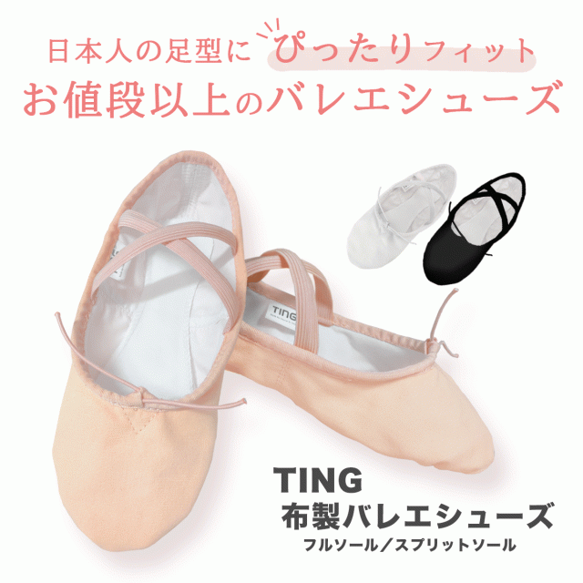 バレエシューズ 【TING】お買得 スプリットソール 布製バレエシューズ クロスゴム 練習用 中国製 大人用 子供用 ジュニア キッズ 白/黒/肌色/ヨーロピアンピンク 幅広 新体操にも 格安バレエ用品 ダンス/エレクトーン靴/バトン/ベリーダンス