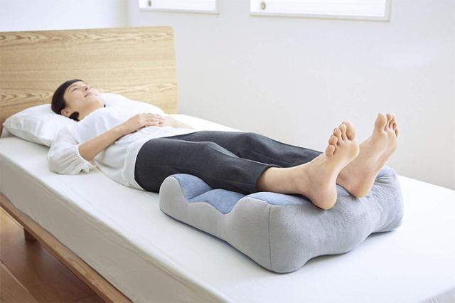 布団との隙間をなくし、腰への負担を軽減。適度な高さと脚のカーブに沿った形状が足首からふくらはぎを包み込むように支え、脚全体にリラックス効果を与えます。