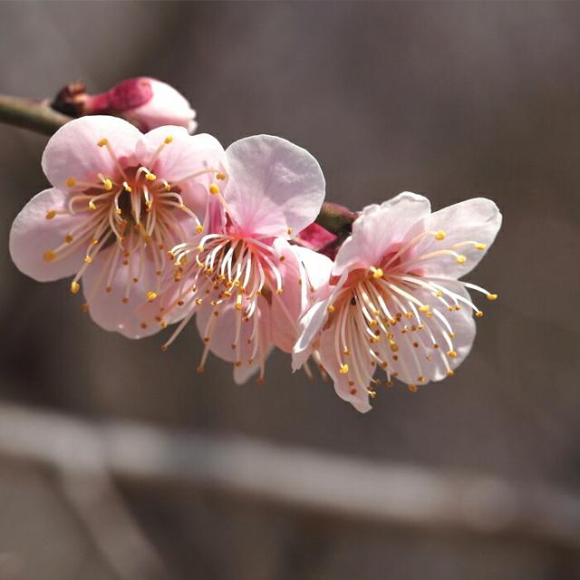 梅のなかでも大きな果実をつける豊後梅は、梅とアンズの交配種です。豊後は花も美しく、薄いピンク色に色付く花は一重または八重咲きで、花木としても観賞価値が高くて人気です。果実は30〜50g前後と大きく、タネが小さくて食べ応えがあります。寒さに強い特性はアンズを親にもつ豊後ならではで、青森県でも盛んに栽培されています。収穫時期は6月中旬ごろからの中生品種で、1本でも結実しますが、他の品種のウメが近くにあったほうが良いです。花の美しさから、花木やシンボルツリー としても人気の品種です。
