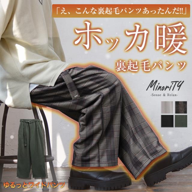 裏起毛で風を通さないワイドパンツは、「温かさ」と「ゆるっと」感が両立された冬の理想のパンツです。