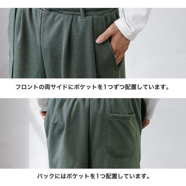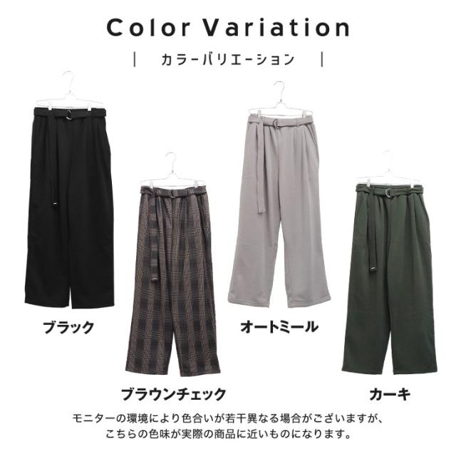 「冬の定番ホッカ暖パン」ベルト付き裏起毛タックワイドパンツ