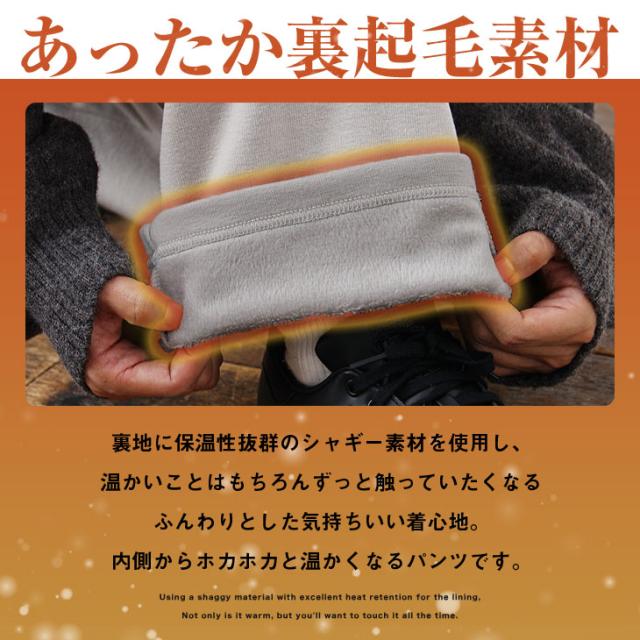 保温性バツグンのシャギー素材を使用した内側からホカホカ温かいベルト付きのワイドパンツ。