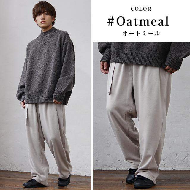 【ベルト付き裏起毛タックワイドパンツ】保温性バツグンのシャギー素材を使用した内側からホカホカ温かいベルト付きのワイドパンツ。