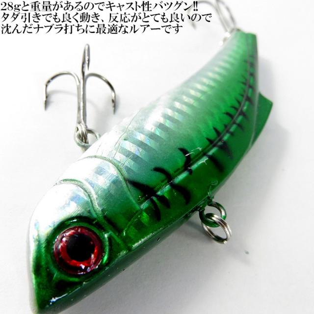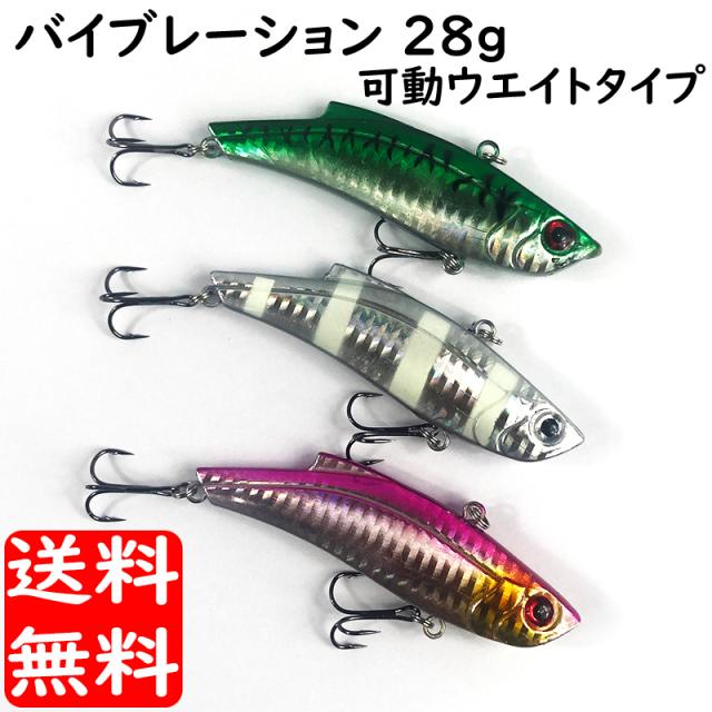 釣り具 ハードルアー ただ引き バイブレーション 28g 89mm 可動ウエイト ホログラムカラー 3色 【メール便のみ送料無料】