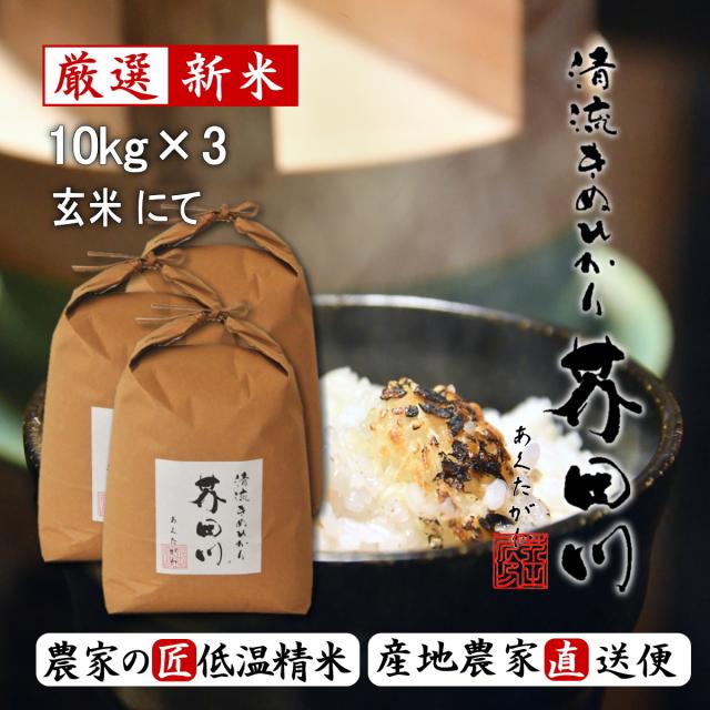 令和7年産 新米 米 お米 10kg×3 30kg 送料無料 玄米 清流きぬひかり芥田川 石抜処理済 玄米食 農家産地直送 米 30キロ 贈答 お米ギフト 贈り物