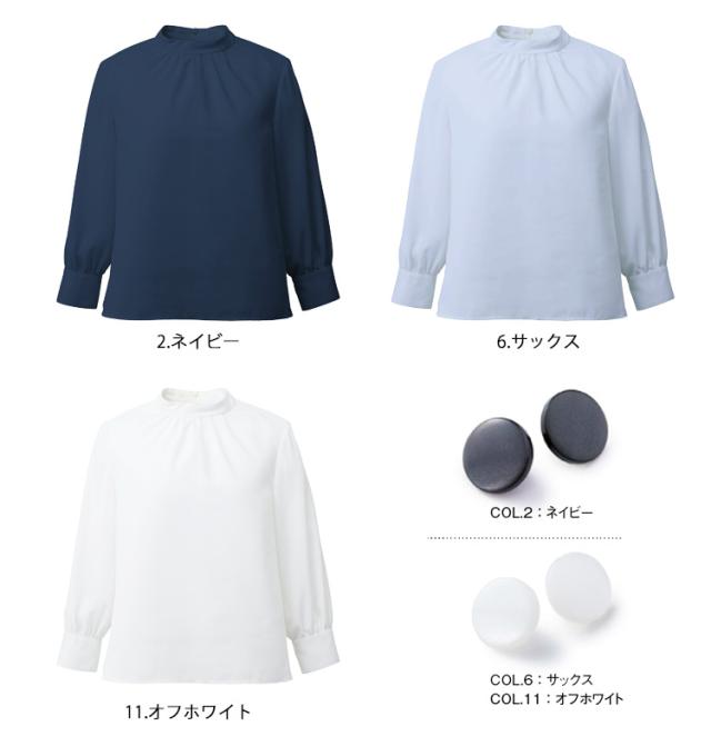 事務服 制服 enjoy エンジョイ カーシーカシマ スタンドギャザーブラウス(八分袖) EWB755