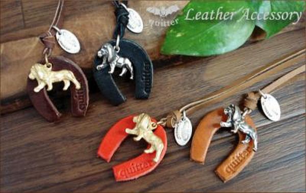 ネックレス ペンダント メンズアクセサリー アクセサリー ファッション ラッキーチャーム 馬蹄 ライオン カーフレザーネックレス 日本製 【送料無料】