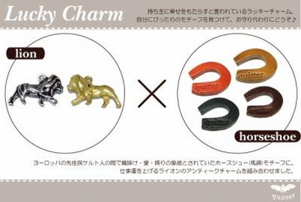 ヨーロッパの先住民・ケルト人の間で古くから魔除けや幸運を呼ぶシンボルとして親しまれてきたホースシュー(馬蹄)モチーフのレザーに、仕事運をアップさせるライオンのアンティークチャームを組み合わせました。