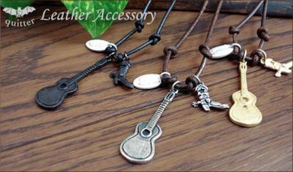 ネックレス ペンダント メンズアクセサリー アクセサリー ファッション ギター ブーツ ヴィンテージ加工 レザーネックレス 日本製 made 【送料無料】