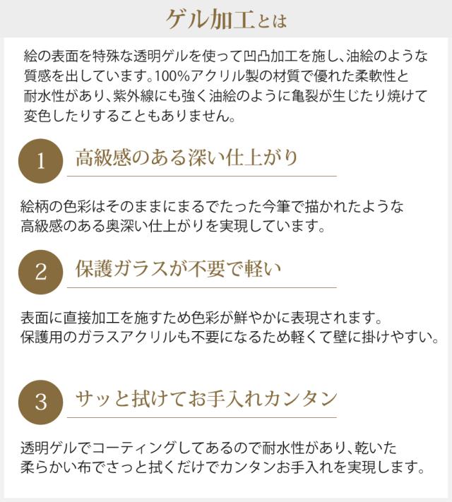 絵の表面は特殊ゲル加工されており、高級感のある奥深い仕上がり。