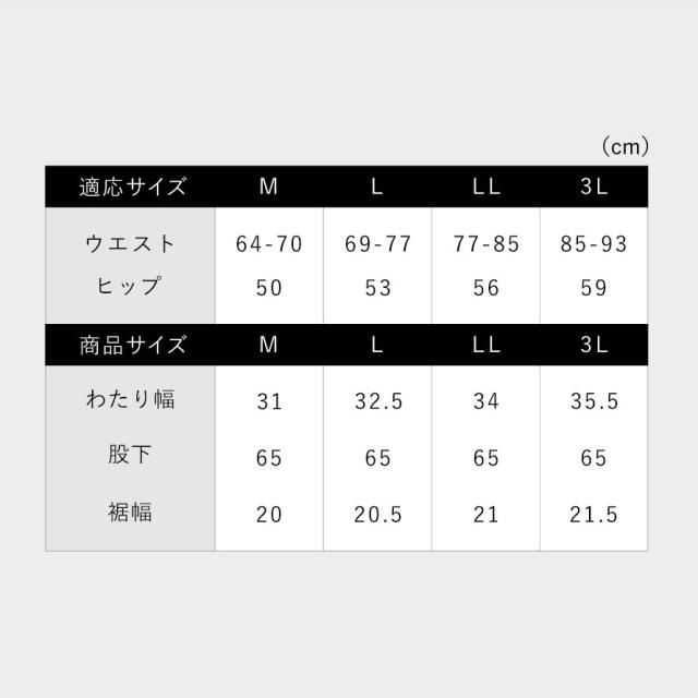 ■サイズ:M/ウエスト64-70、L/ウエスト69-77、LL/ウエスト77-85、3L/ウエスト85-93cm