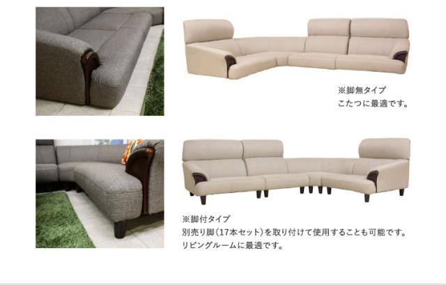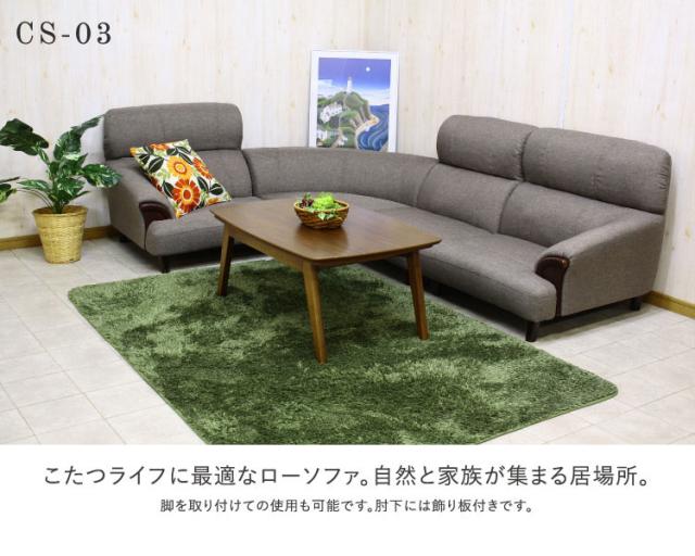 こたつライフに最適なローソファ。脚を取り付けての使用も可能です。肘下には飾板付。