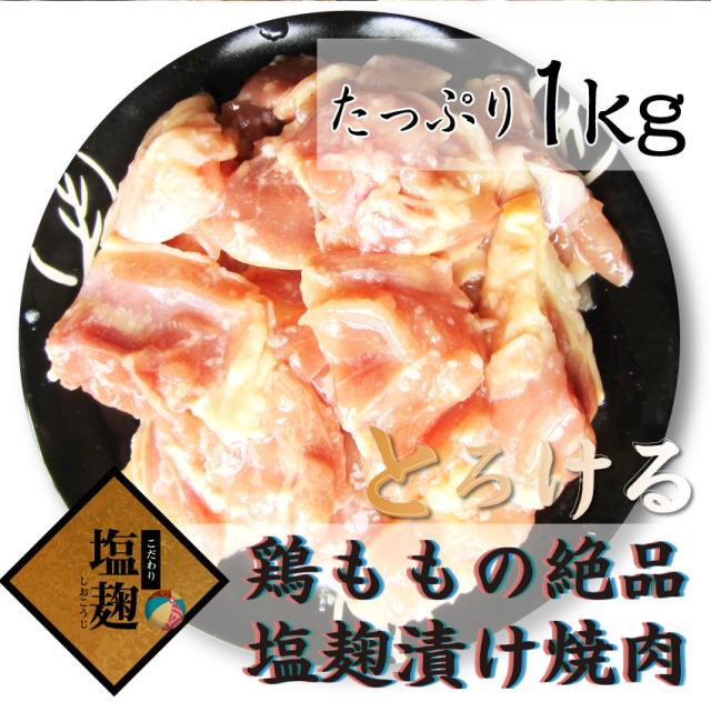 ジューシー とろける 鶏もも 塩麹 漬け 焼肉 たっぷり 1kg (500g×2) 焼肉 バーベキュー BBQ 肉 鶏もも 食べ物 鶏肉 肉 アウトドア お家焼肉 レジャー 焼肉用 業務用 冷凍 キャンプ キャンプ飯 *当日発送対象 お肉の しゃぶまる